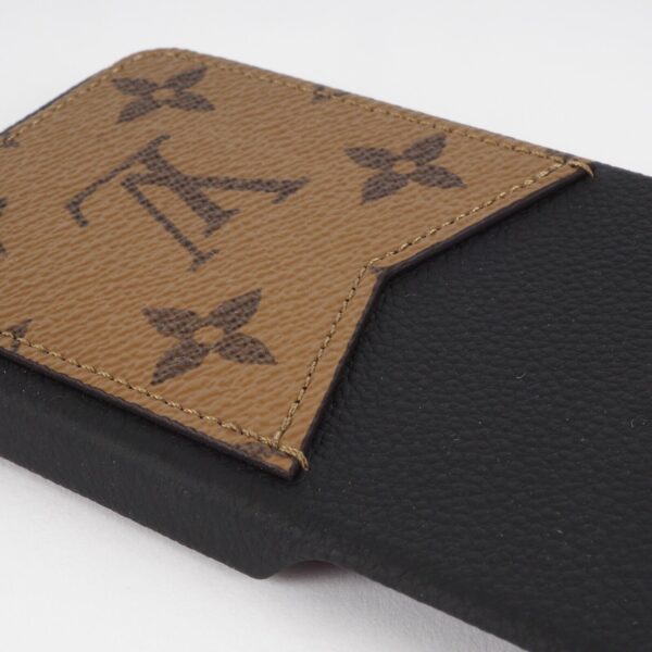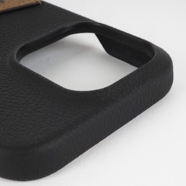Beim iPhone 15 Pro Pallas Bumper wird Monogram Reverse Canvas mit Kalbsleder kombiniert, einem unverzichtbaren Accessoire zum Schutz des Smartphones der neuen Generation. Diese robuste Hülle ist mit weicher Mikrofaser gefüttert und schützt das Telefon vor Stößen und Kratzern. Das stilvolle Design verfügt über eine V-förmige flache Tasche, in der Tickets oder Karten aufbewahrt werden können.