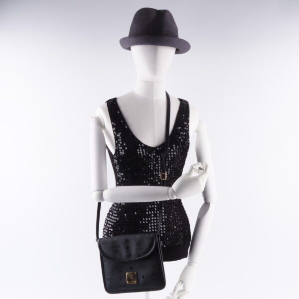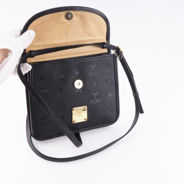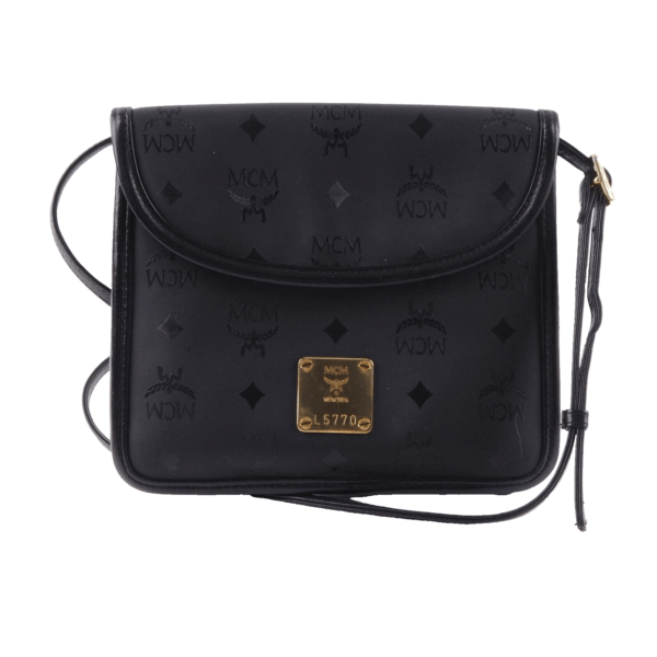 Diese schwarze Visetos muster Flap unisex Crossbody von MCM wurde in Deutschland in der 90-er Jahren gefertigt. Sie ist in gutem gebrauchten Zustand mit leichten Kratzer an der Hardware. Innen und außen sauber. Altersentsprechende Patina.